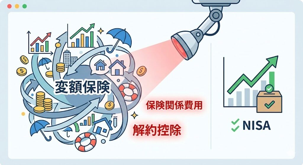 【本記事について】 このシリーズは、**「もし金融知識ゼロのシニアが、金融商品のパンフレットをAIに読み込ませたらどうなるか?」を検証するドキュメンタリー風記事です。 今回は、AIに「解説」ではなく「徹底的なコスト計算」**を指示し、変額保険の正体を数字で解き明かします。 ※記事内の数値は一般的な商品モデルに基づく試算です。実際の手数料率は商品ごとに異なるため、必ずご自身の手元にある設計書で検証(再計算)してください。