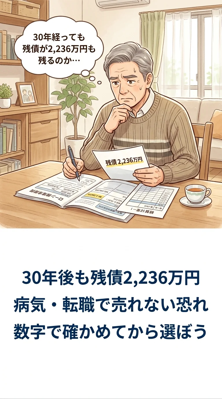 返済初期〜中期に元本がほとんど減らず、売却・住み替え・離婚・転勤など「人生イベント」で身動きが取りにくくなります。長期であるほど、この拘束期間が伸びます。
