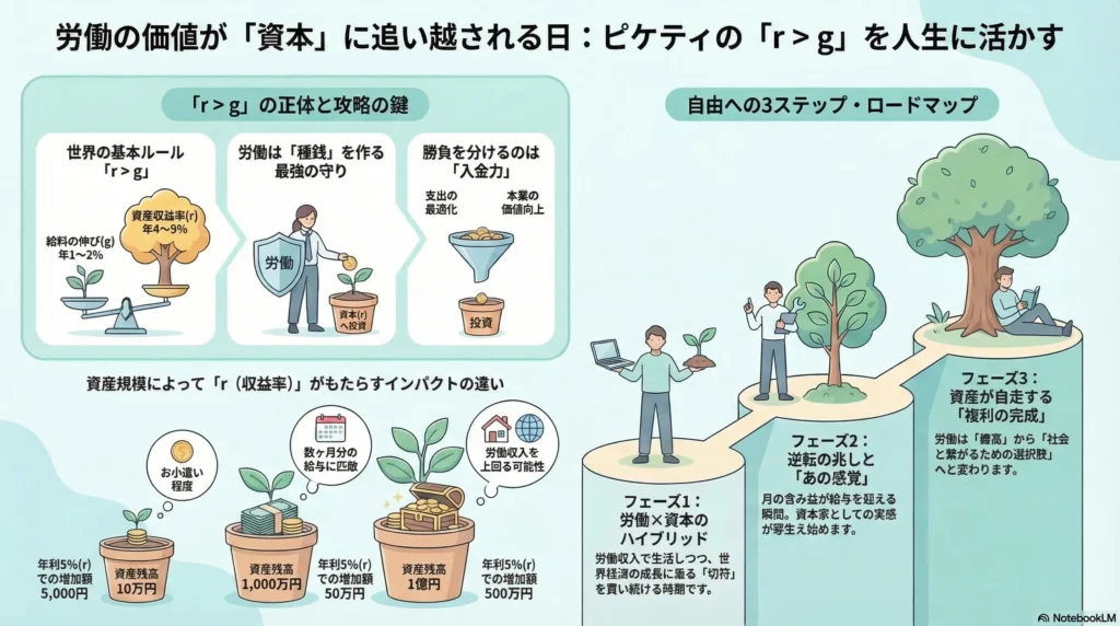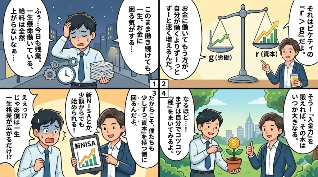 目先の株価の上下に一喜一憂するのではなく、歴史的な r>g の流れを深く理解すること。そして、自分の小さな労働を、世界の大きな資本へと繋げていく広い視点を持つこと。