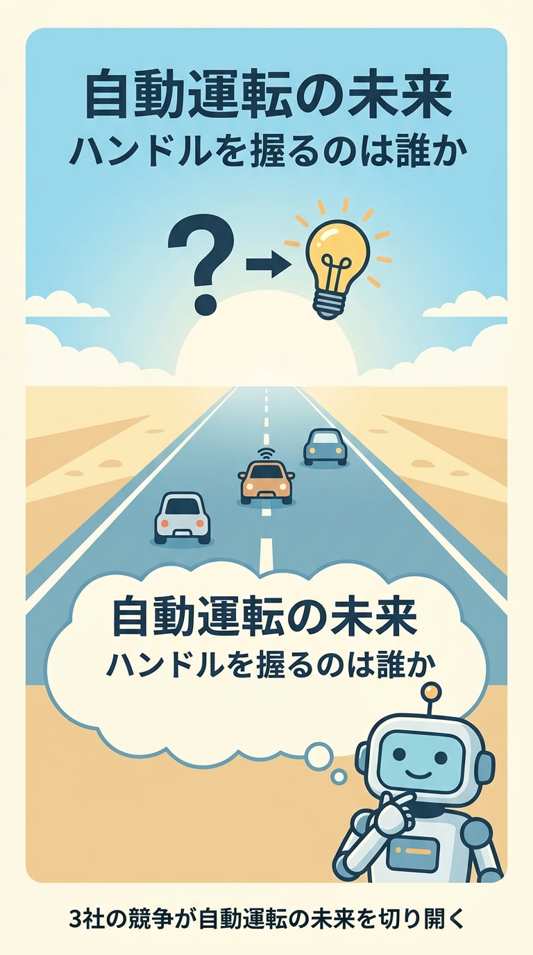 ニュースで自動運転タクシーの映像を見た時、「これが当たり前になる時代が本当に来るのか」と驚きました。テクノロジーの進化を追いかけるうちに、各社のアプローチがまったく違うことに気づき、整理してみたくなりました。