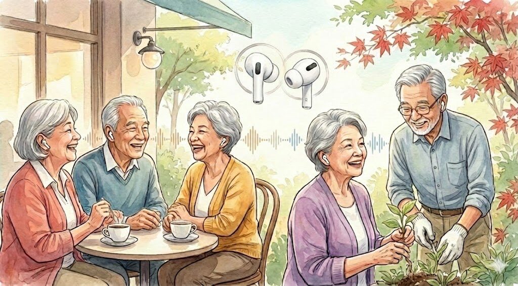 補聴器のように見えず、普通にイヤホンをしているだけに見える。これだけで心理的にだいぶラクでした。そして実際に効いたのが、**外音取り込み(Transparency)**と、その調整機能です。AirPods Proでは、会話の聞き取りを助ける機能(Conversation Boost など)も装備されています。