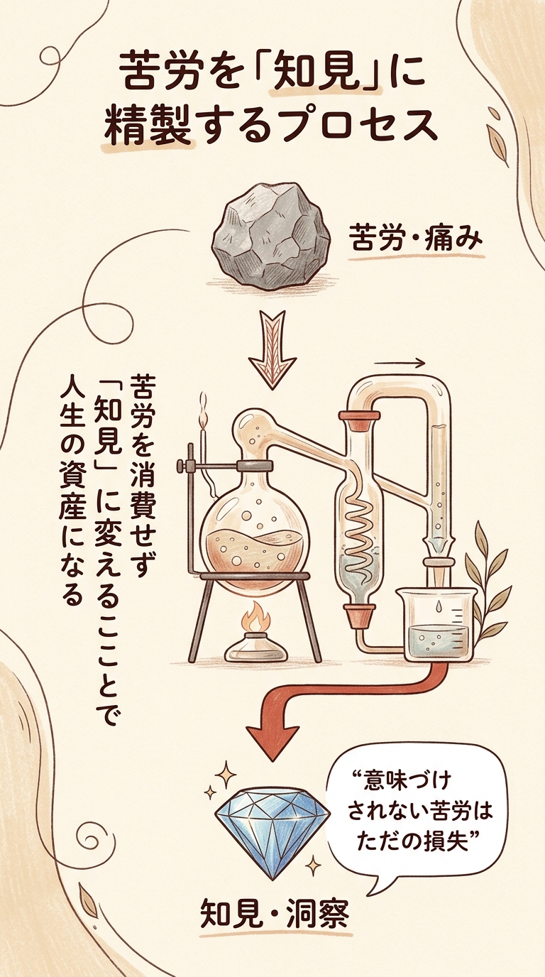 苦労は語るものではなく、冷徹に加工して、未来の自分を助ける「武器」に変える。 それこそが、困難から得られる唯一にして最大の配当です。