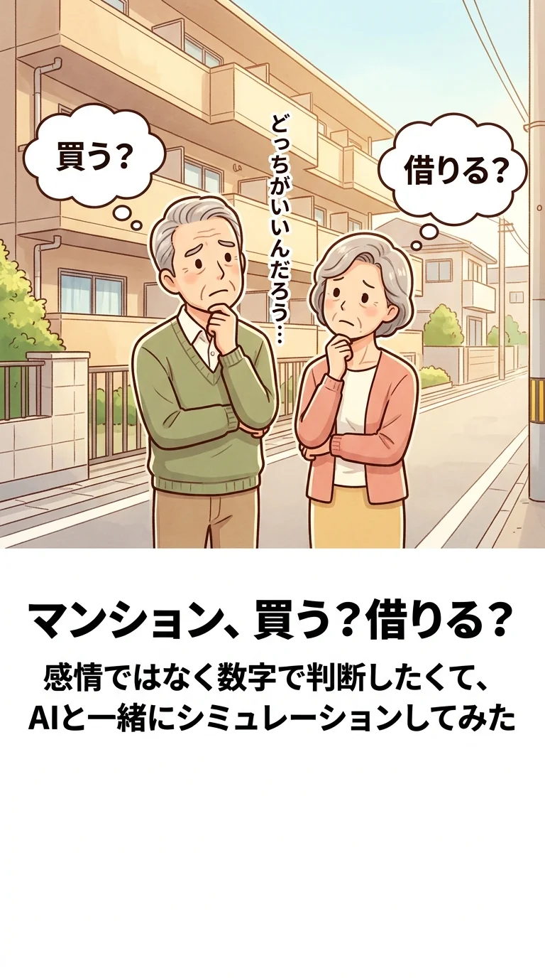 マンション購入の話になると、どうしても「安心」「自分の家」「家族の拠点」といった感情が前に出ます。もちろんそれ自体は大切です。ただ一方で、感情が強いテーマほど「数字の検証」を置き去りにして、後からモヤモヤが残りやすいのも事実です。
