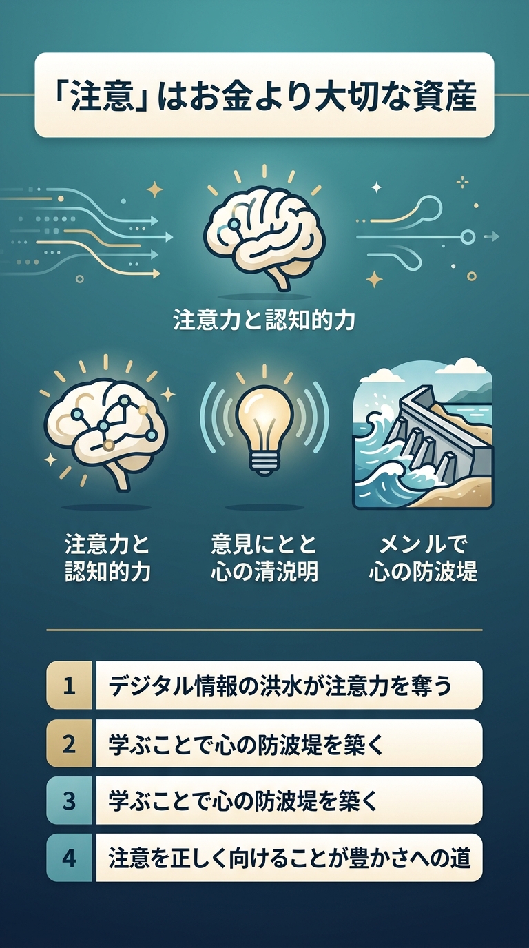 では、どうすればこの情報の洪水から、自分の「注意」を守れるのでしょうか。 ここで大切なのが、まず**「学ぶ」**というステップです。