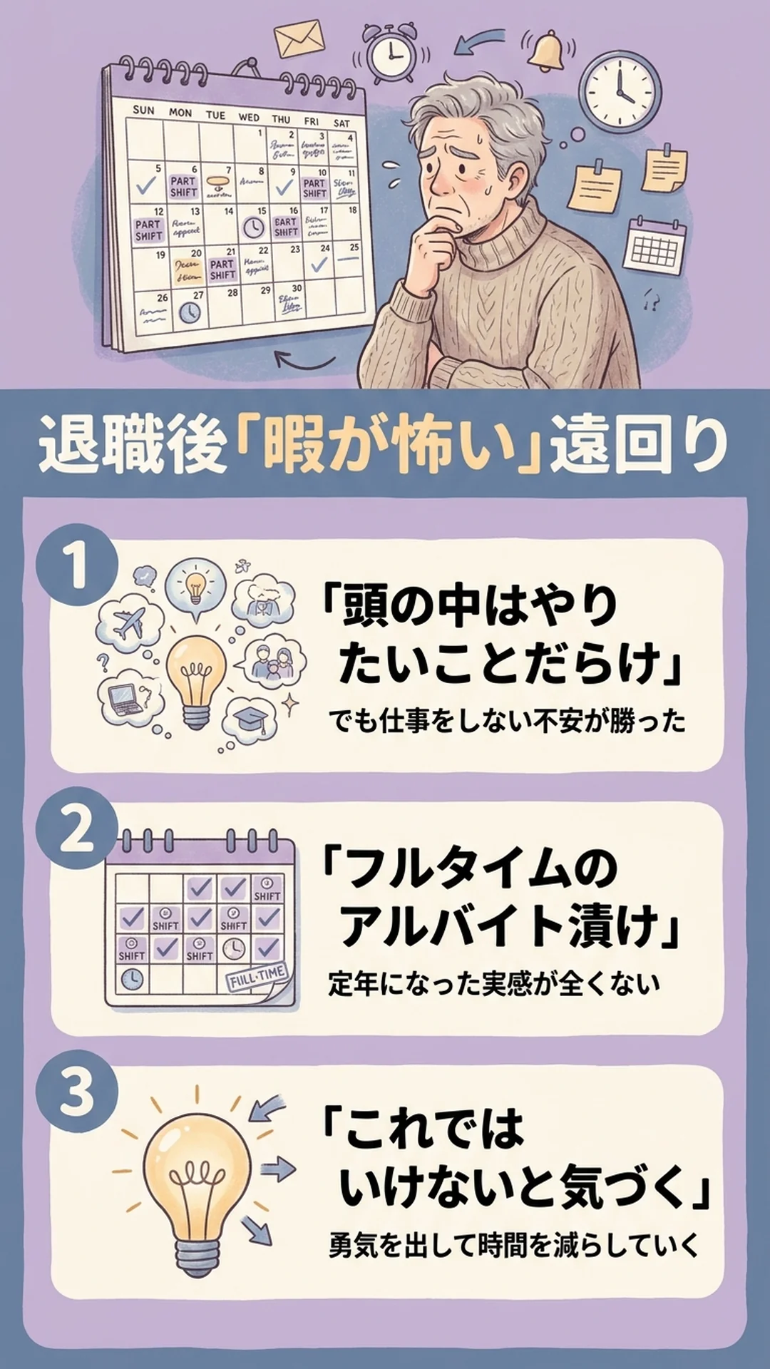 退職後、私は「暇が怖い」という気持ちから、フルタイムのアルバイトで時間を埋め続けました。でも、勇気を出してアルバイトを減らし、自分の時間を取り戻したとき、初めて「時間の余白」の本当の価値に気づいたのです。