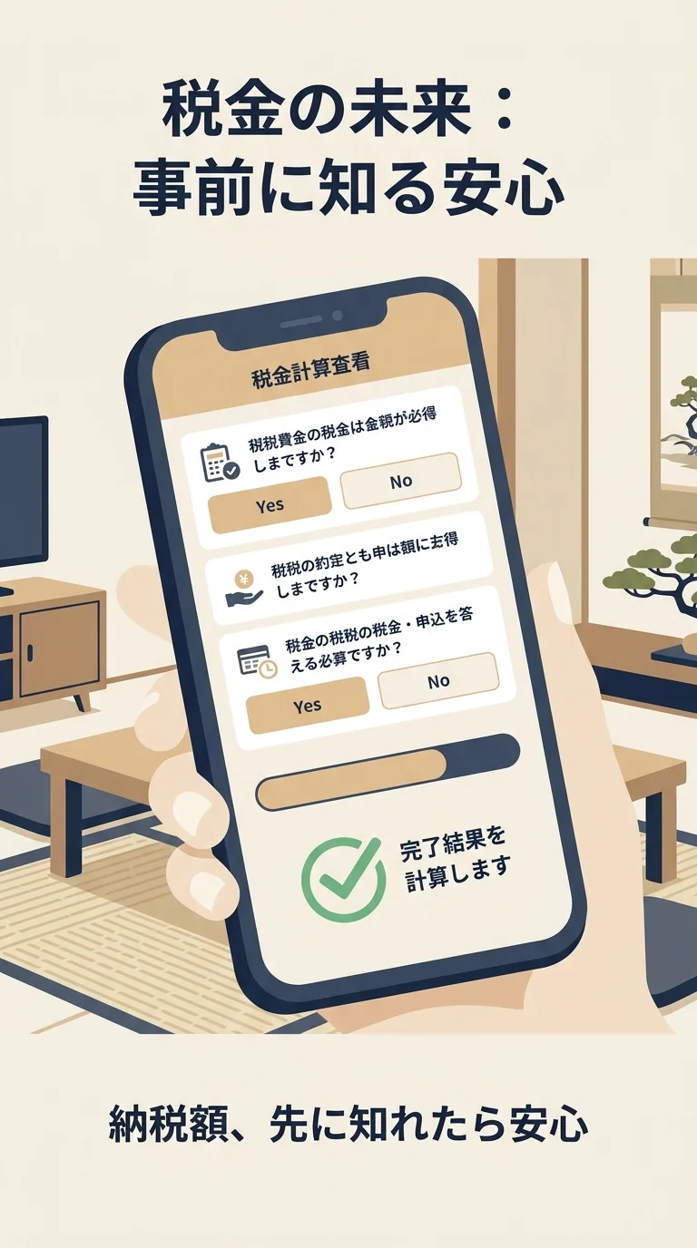 - クイズ形式で進む: 難しい言葉は一切なし。「家を買いましたか?」「子供はいますか?」という質問に答えるだけで、裏側で計算が進みます。