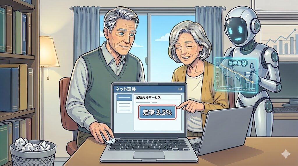 AI: 「今の主要なネット証券(楽天証券やSBI証券など)には、保有している投資信託を**『毎月〇%ずつ自動で解約して現金化する』**という無料サービス(定期売却サービス)があります」