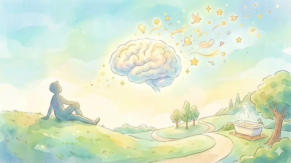 衣服を脱ぎ、温度の変化を感じる時間は、脳にとって最大の休息であり、DMNが最も活発になる瞬間です。お風呂で良いアイデアが浮かぶのは、科学的に理にかなっています。