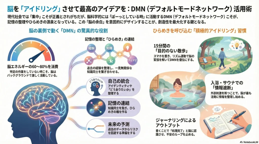 DMNを「不安のループ」ではなく「ひらめき」のために使うための、具体的な方法を提案します。