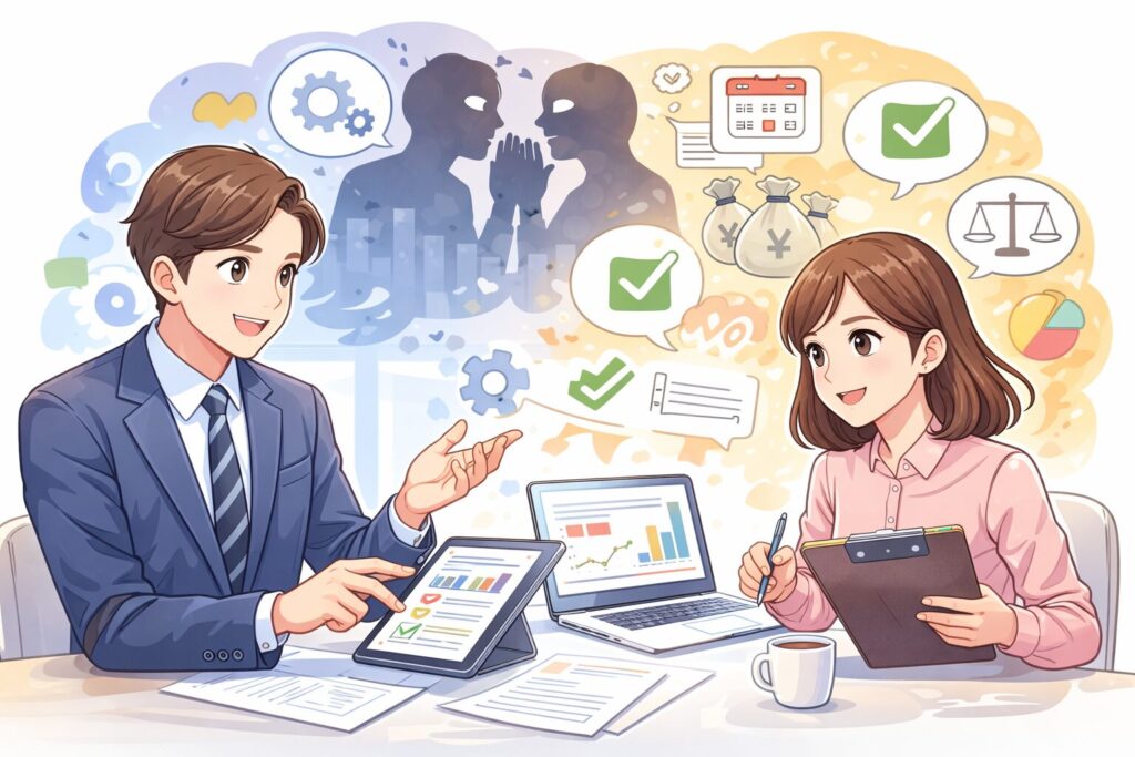 • 事情:手数料、契約条件、予算、期限、責任、制度、リスク