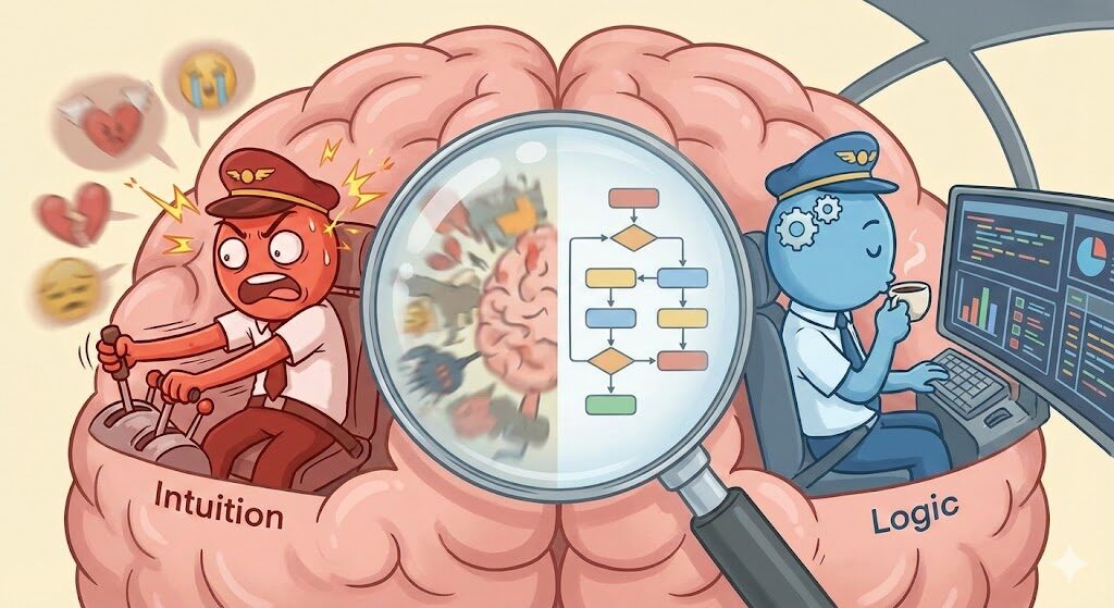 そんな経験、誰にでもありますよね。 私たちは自分の意思で動いているつもりですが、実は頭の中に**「2人のパイロット」**がいて、常に操縦桿を奪い合っているんです。